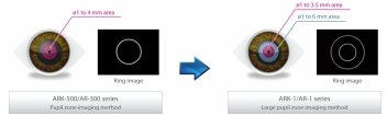 Large pupil zone imaging method The large pupil zone imaging method enables the measurement of wide area refraction of up to 6 mm diameter and can indicate the difference between the wide area refraction and central area refraction of up to 3.5 mm diameter.