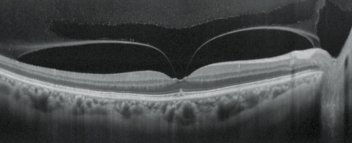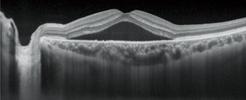 Selection of the appropriate OCT sensitivity allows acquisition of B-scan images through media opacities.