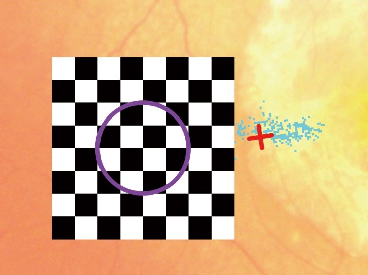 The visual rehabilitation mode trains low-vision patients who have lost foveal fixation to relocate their preferred retinal locus (PRL) to a different region, called the trained retinal locus (TRL). The TRL is predetermined by a physician, and fixation rehabilitation allows the patient better functional vision (i.e. reading speed) due to increased fixation stability and visual outcomes. Active flickering pattern stimulation and cheery music create an effective and pleasant training experience for the patient.