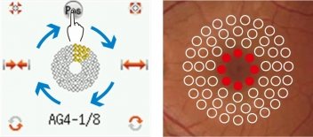 Auto forward function allows automated positioning of the scan pattern for photocoagulation.