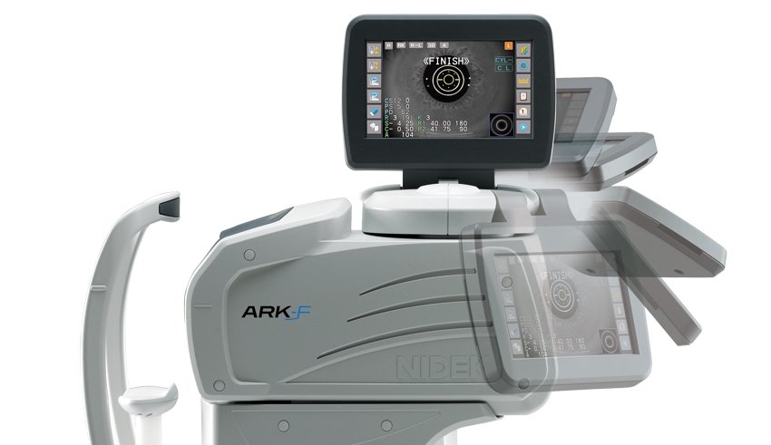Large tilt and swivel monitor Since the screen can be continuously tilted and swivel, the ARK-F/AR-F can be placed anywhere in an examination area. Flexible layout and space saving design contribute to improved productivity and efficiency.