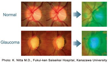The chronological change of the shape of the optic disc and cup can be viewed on a moving image.