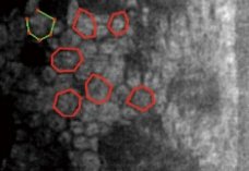 Select a hexagonal reference pattern that is similar to the cell size and drag it onto the cell to be analyzed. This method is effective for rough identification of the size and dimension of the cells.