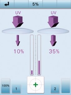 UV transmittance is presented as an intuitive display from 0 to 100% of central wavelength 365 nm (UV-A) in 1 or 5% increments.